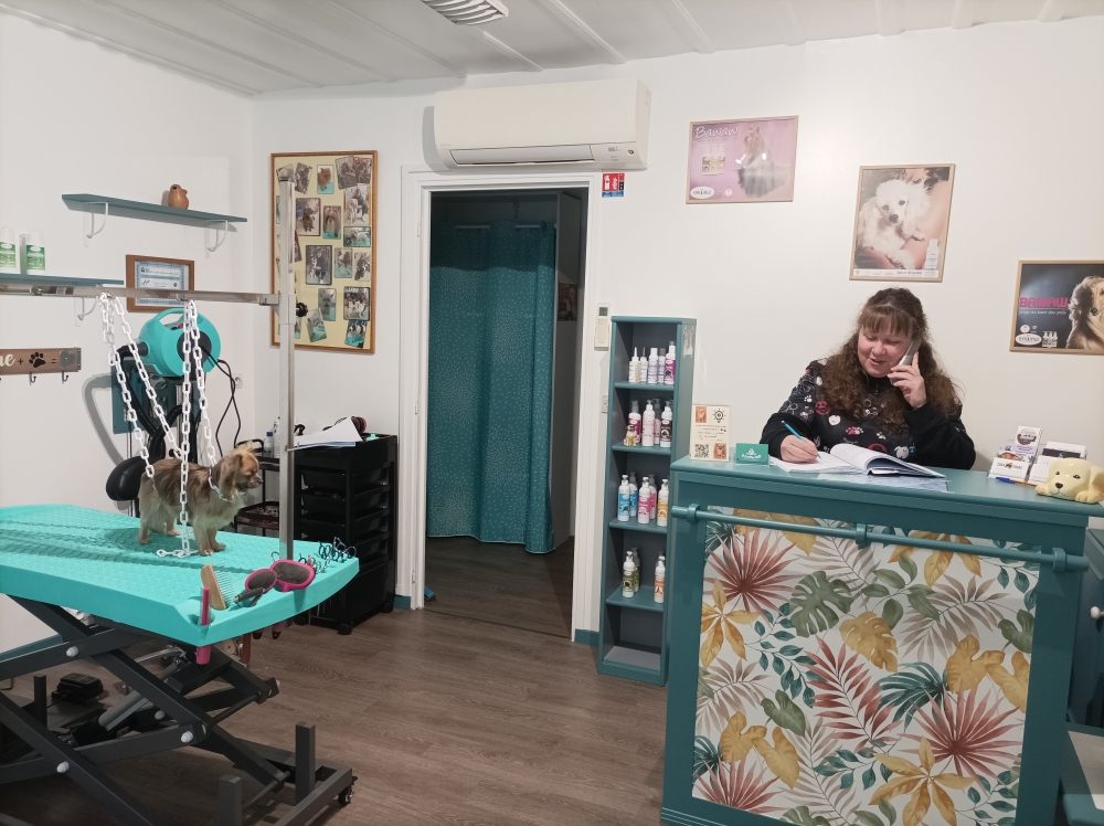 6 mois après cette reprise, dans un salon refait à neuf, Céline accueille non seulement vos toutous pour un toilettage traditionnel, mais elle est aussi formée au massage canin : le bien-être absolu pour vos compagnons !